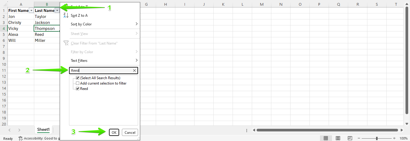 Here is a step-by-step guide on how to search for a name in an Excel spreadsheet: